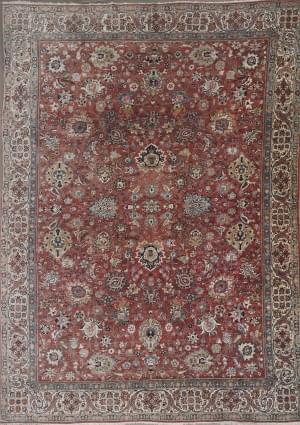 Laine à motifs floraux et oiseaux sur fond rouge brique, 361x263...
