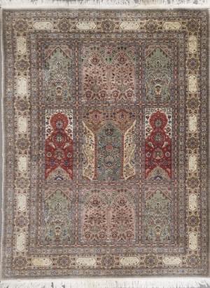 Laine à motif de huit mihrab stylisés sur fond céladon, beige et...