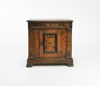 Un tiroir, un vantail, noyer et marqueterie de bois noirci, 83x7...