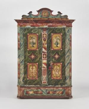 624. Armoire peinte de mariage, Suisse ou Autriche, datée 1862