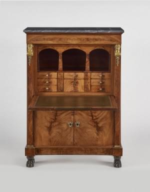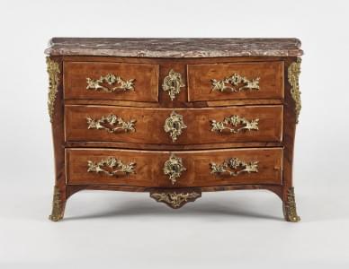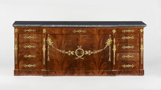 Dix tiroirs et deux vantaux, acajou et riche ornementation de br...