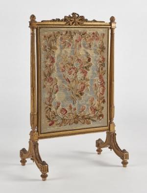 Bois doré, tapisserie aux petits points à décor de fleurs, H 100...