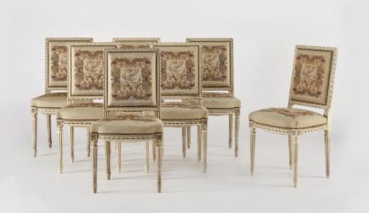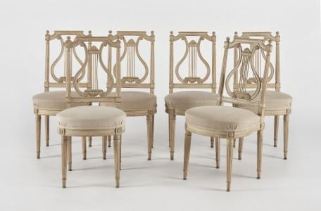 633. Six chaises à dossier lyre d'époque Louis XVI