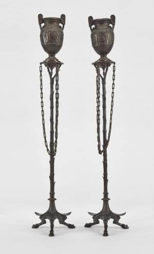 643. Paire de torchères tripodes d'après l'antique, Italie, XIXe s