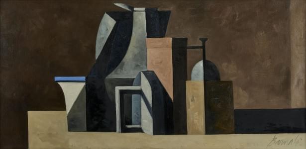 Nature morte au fer à repasser, huile sur toile, 48x99 cm