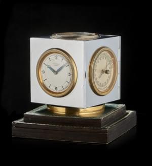Composée de quatre cadrans faisant montre, baromètre, thermomètr...