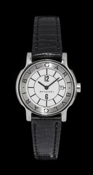 Cadran blanc, aiguilles et chiffres romains noirs, date à guiche...