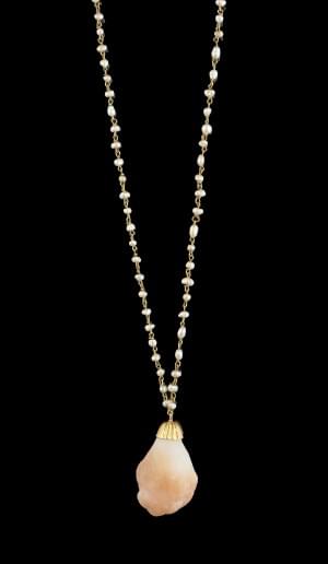 914. Chaîne ponctuée de petites perles retenant une perle baroque Cla...