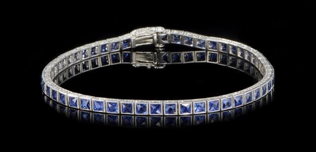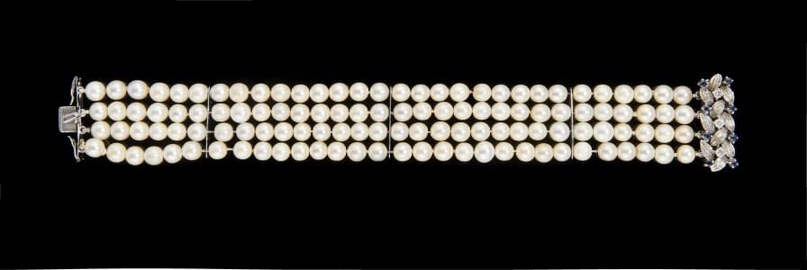 Composé de quatre rangs de perles ponctués de barrettes et termi...