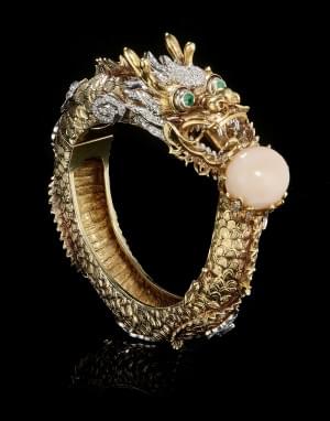 918. Bracelet ouvrant à motif de dragon pavé de diamants
