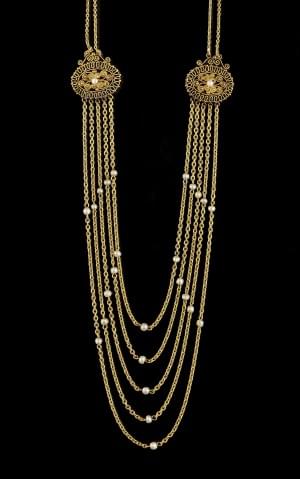 920. Collier draperie multi-rangs composé de maille forçat ponctuée d...