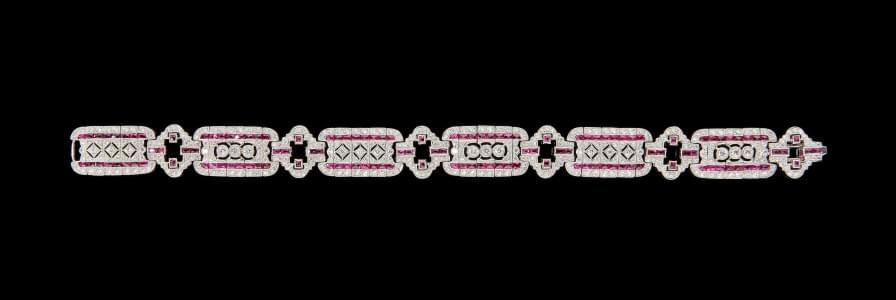 Pavé de diamants (env. 3,9 ct) et de rubis calibrés, platine 900...