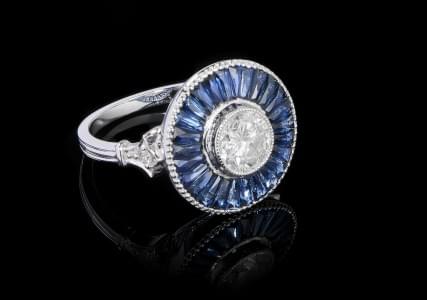 Centrée d'un saphir taille ovale (env. 0,4 ct) entouré de saphir...