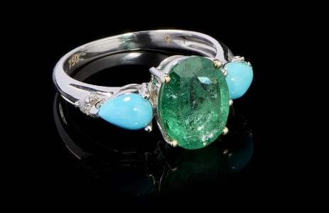 Epaulée de deux turquoises taille cabochon poire et de deux diam...
