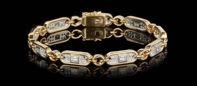 974. Bracelet composé de motifs ovales sertis de diamants taille prin...