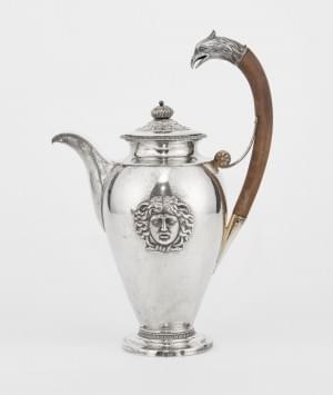 1015. Verseuse néoclassique à décor appliqué de gorgone et anse tête d...