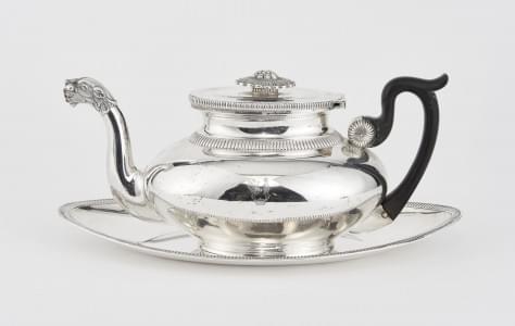 1020. Théière sur présentoir à frise de godrons et bec verseur tête de...