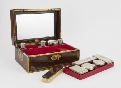 1023. Nécessaire de toilette de voyage d'époque Restauration à décor g...