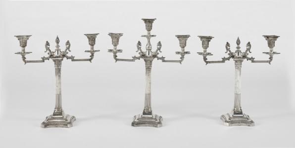 1037. Suite de trois candélabres à trois feux de style George III