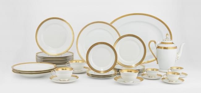 1074. Service à dîner à bordure dorée mat et brillant