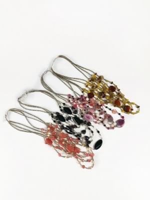 4122. Collier multi-rangs de perles de grenat ponctuées de pierres fin...