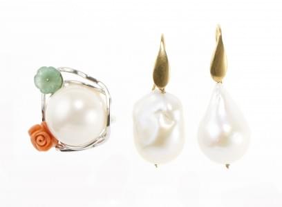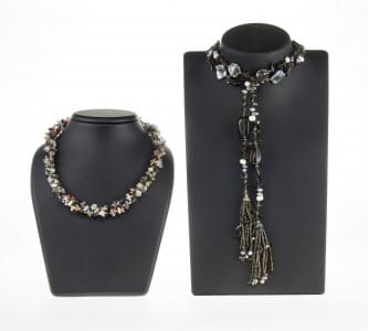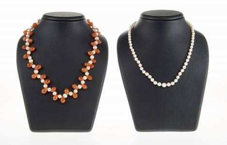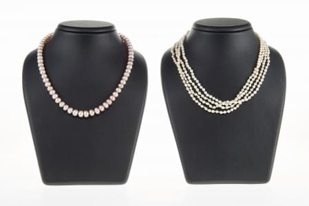 L'un multi-rangs de perles blanches et l'autre couleur lavande,...