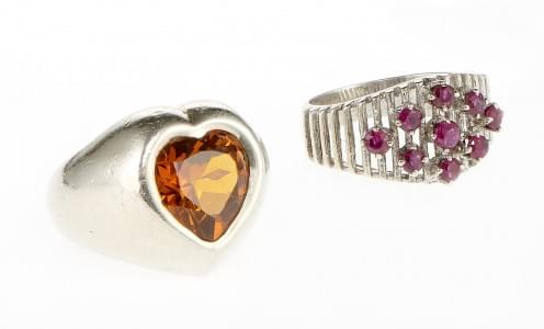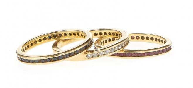 4194. Lot de trois anneaux entièrement sertis l'un de rubis, le deuxiè...