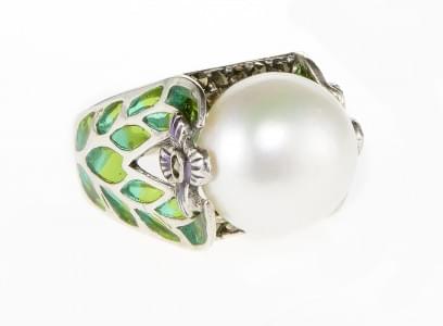 4130. 6809 -*Bague émaillée de style Art nouveau centrée d'une perle (...