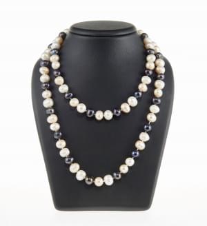 4132. Sautoir de perles d'eau douce blanches, rosées et grises (env. 9...