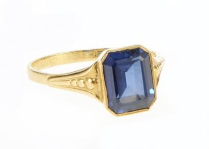 4144. Bague chevalière sertie d'un saphir synthétique taille rectangle