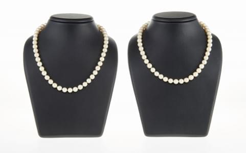 4145. Lot de deux colliers de perles terminés chacun par un fermoir se...