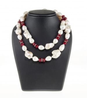 4146. Sautoir de perles baroques ponctué de pierres d'imitation pour l...