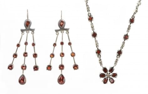 4177. Lot d'un pendentif et de clous d'oreilles sertis de grenats tail...