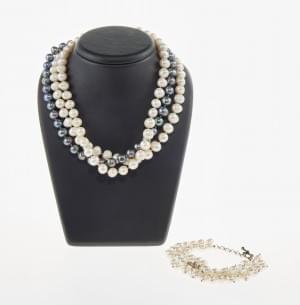 4108. Lot de trois colliers fantaisie composés de perles d'eau douce e...