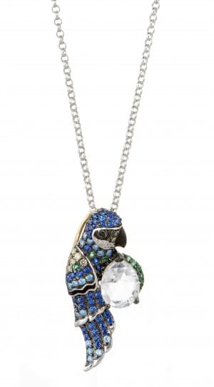 4159. 6623 -*Collier à motif de perroquet émaillé retenant une topaze...