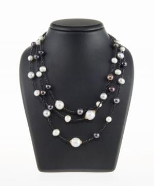 4123. Collier cravate composé de perles de nacre, de perles blanches e...