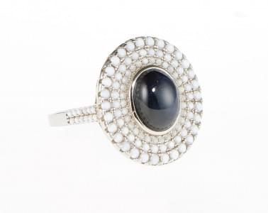 l'un serti d'un saphir taille cabochon entouré d'un pavage d'opa...