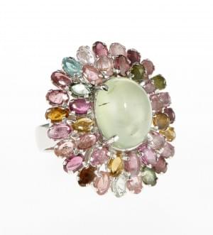 4180. 6824 -*Bague sertie d'une prasiolite taille cabochon ovale dans...
