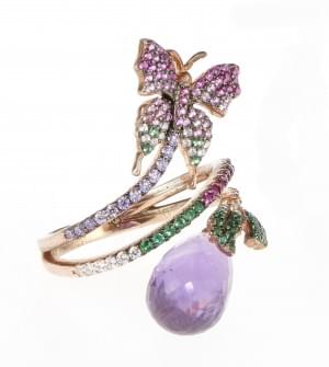 4201. 6617 -*Bague ajourée à motif de papillon retenant une améthyste...