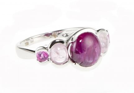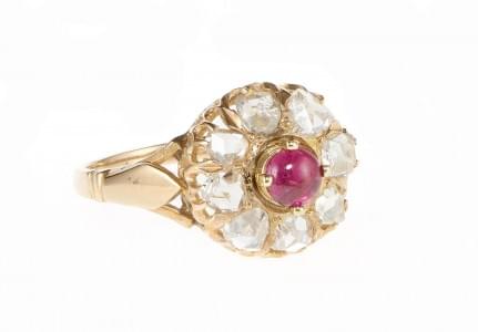 4317. Bague sertie d'un rubis cabochon entouré de roses de diamants