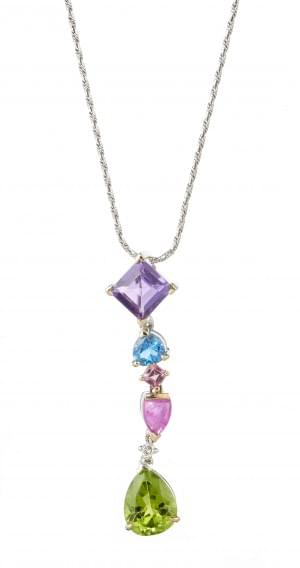 Rehaussé d'un petit diamant, d'une tourmaline rose, de topazes e...
