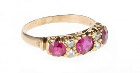 4319. Bague jarretière sertie de rubis probablement synthétiques