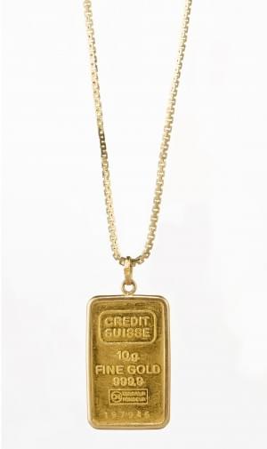 4322. Chaîne à maille vénitienne retenant un lingotin de 10 g monté en...