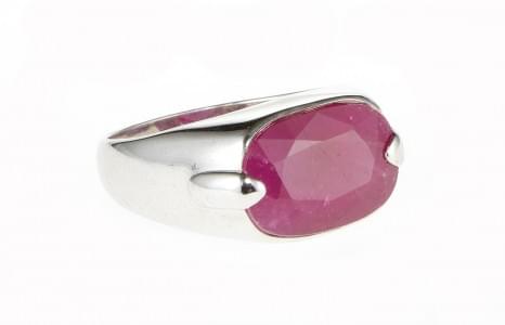 4328. Bague chevalière sertie d'un rubis taille ovale (env. 7 ct)