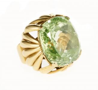 4331. Bague sertie d'un spinelle synthétique vert taille coussin (env....