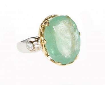 4336. 6292 -*Bague sertie d'une émeraude taille ovale (env. 9,7 ct) ép...