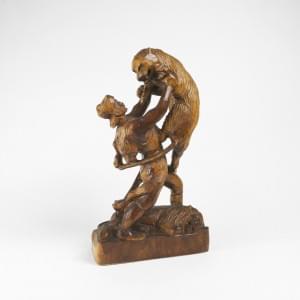 4389. Encrier à décor d'enfant au chien et figurine de bergère