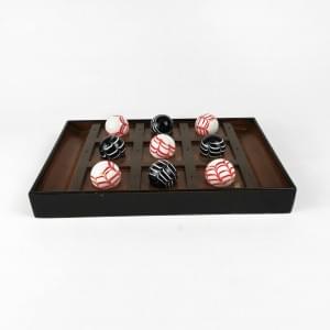 4358. Plateau sur piètement à motif noir et or de palmettes