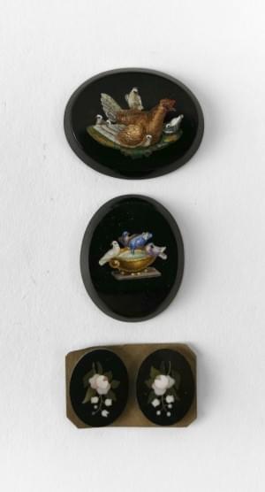 4400. Quatre médaillons en micromosaïque à motif d'animaux et fleurs,