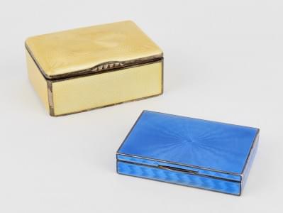 4406. Deux boîtes guillochées et émaillées jaune et bleu